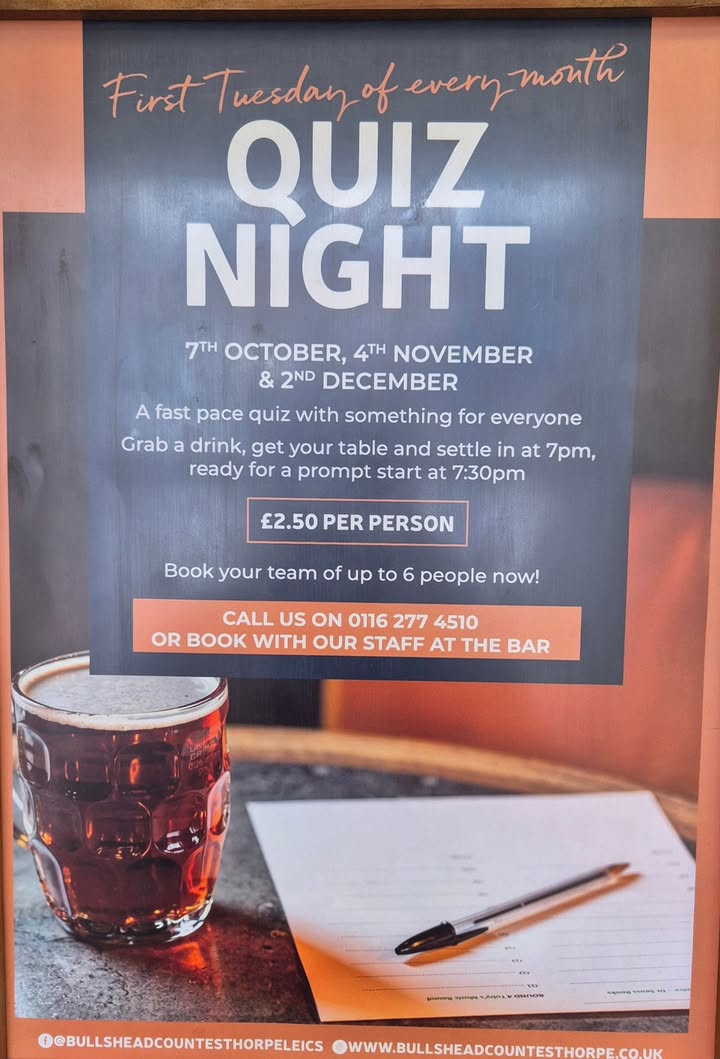 A fast pace quiz with something for everyone. Grab a drink, get your table and settle in at 7pm, ready for a prompt start ar 7:30pm.